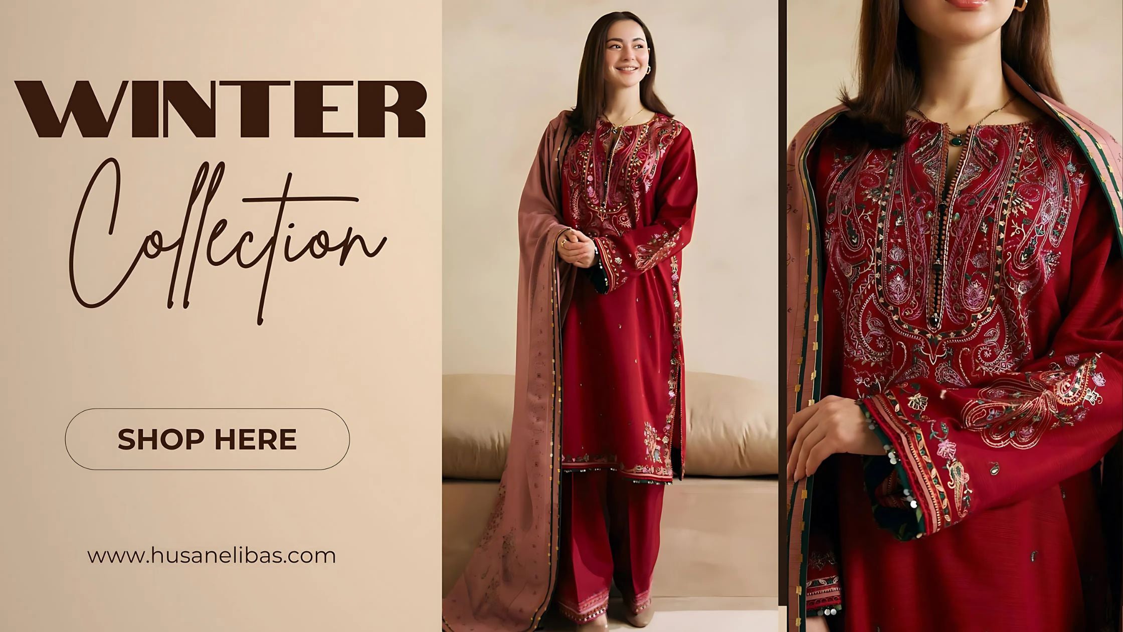 HL630-Winter Velvet Embroidered Dress With Organza Embroidered Dupatta