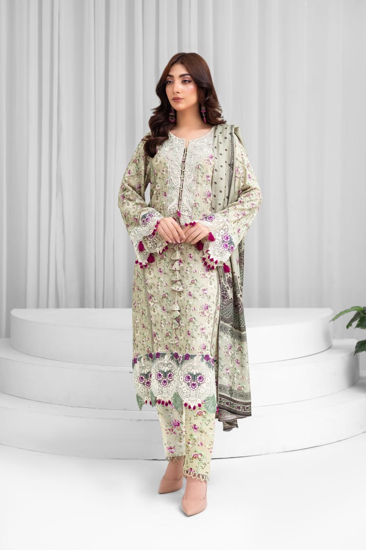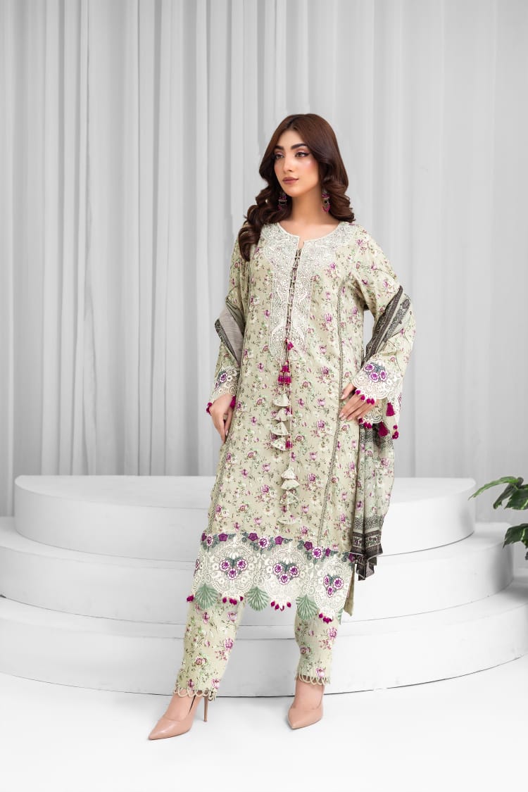 AY6 - Ladies Linen 3PC – Digital Print, Embroidery & Patch Work