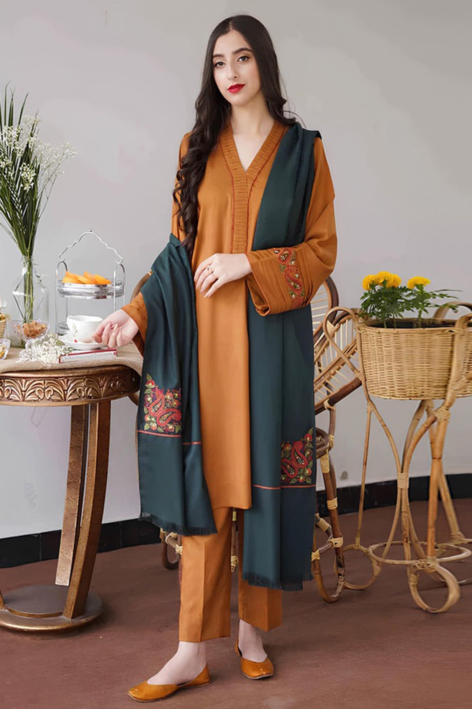 HL400-Asling Winter 3PC Dhanak suit with Embroidered Dhanak Shawll